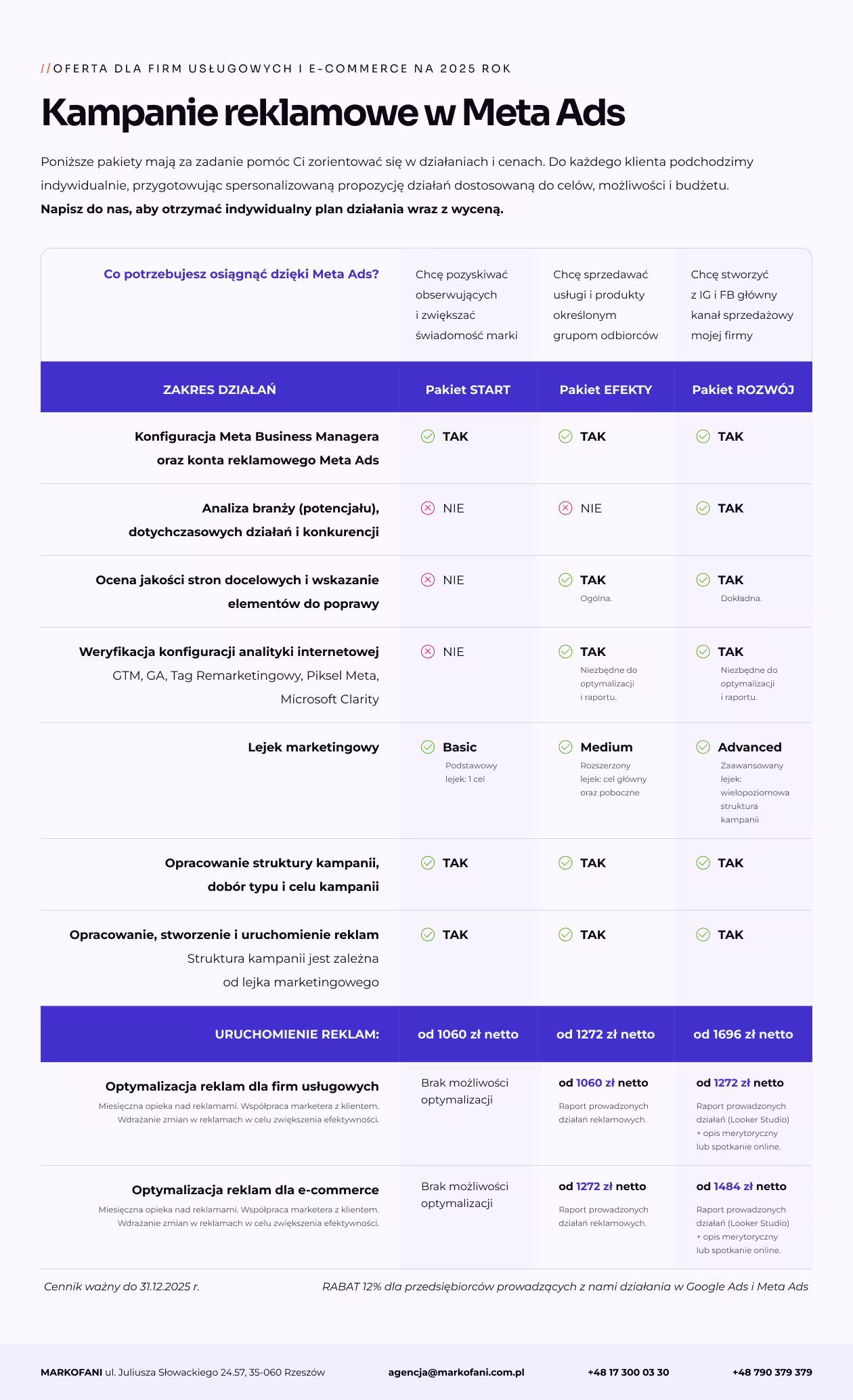 Uruchomienie reklam (jednorazowo)od 636 zł nettood 1060 zł nettood 1908 zł netto